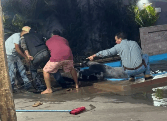 Deu um “baile”: Touro de quase 1 tonelada cai em piscina de casa em Camapuã