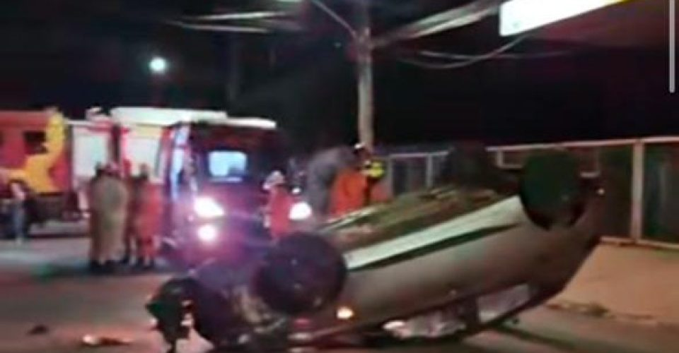 Um Hyundai HB20 capotou após colidir contra um veículo estacionado pouco antes da meia-noite deste domingo (1ºo), na Avenida José Nogueira Vieira, no bairro Tiradentes, em Campo Grande.