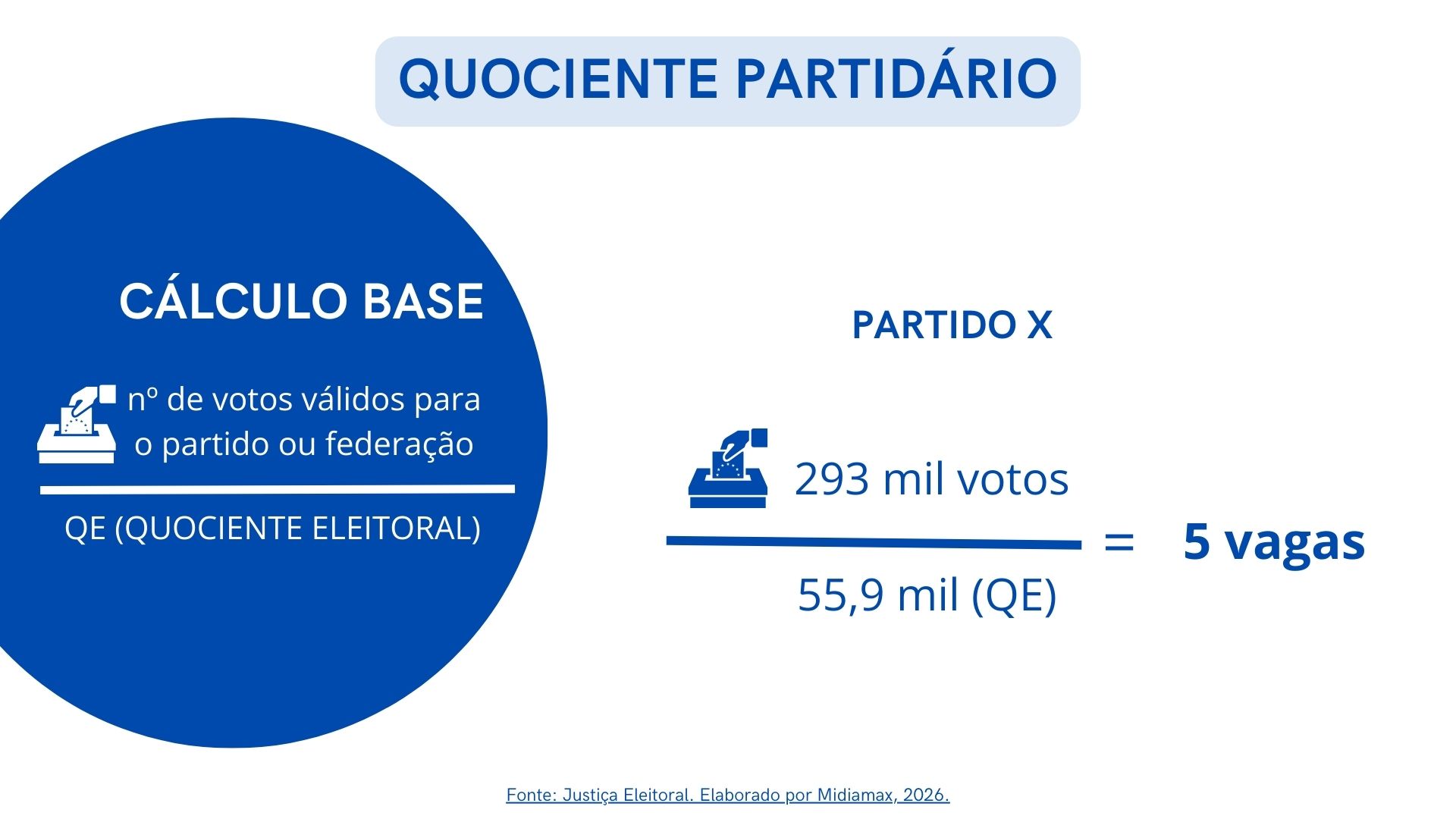 Então, se mais de uma vaga sobrar, repete-se o cálculo até o preenchimento das vagas. Um destaque necessário é que, se um partido já obteve uma vaga de sobra, deverá somar no cálculo quantas vagas ele já obteve.