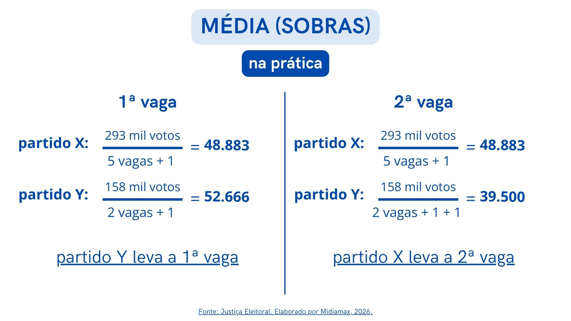 Mas vale o reforço: regra é válida para as sobras, o que muda a partir de 2026 são as sobras das sobras. Ou seja, aquelas cadeiras que, mesmo após distribuição por média, ainda precisam de preenchimento.