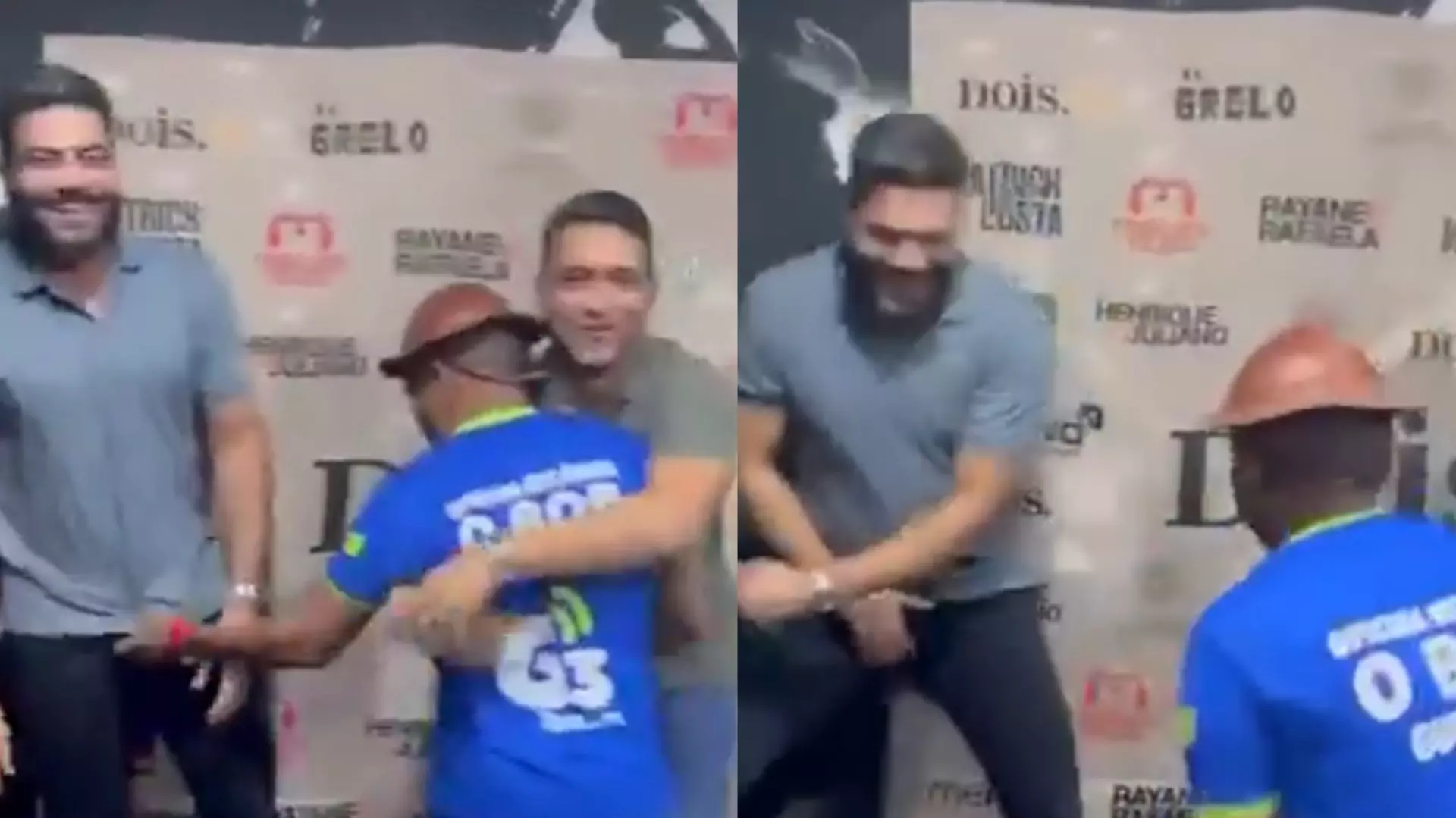 Em um vídeo que circula nas redes sociais, é possível ver o momento em que ele cumprimenta os sertanejos com uma força exagerada. Além disso, o admirador ainda brincou de apalpar as partes íntimas de Henrique, que se afastou e caiu na risada com a situação.