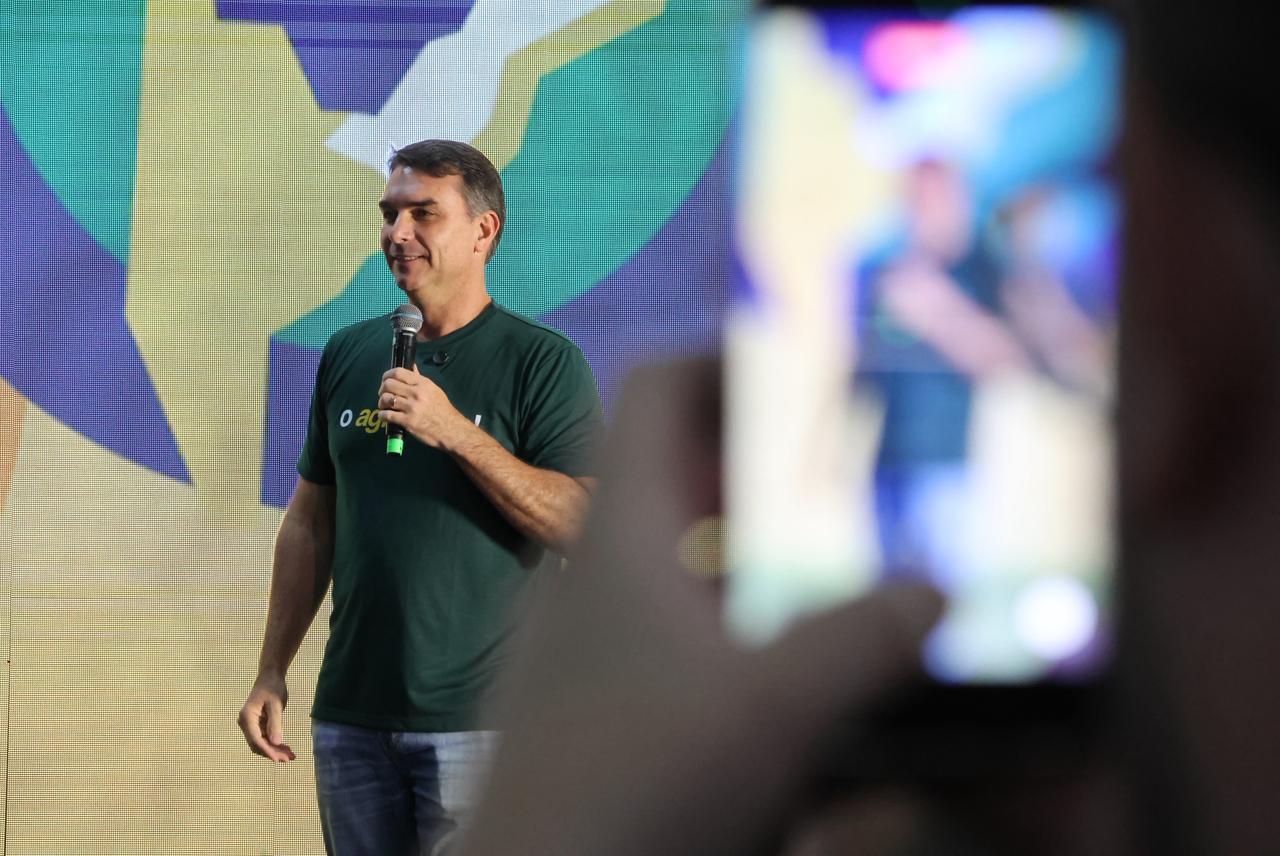 O governador Eduardo Riedel (PP) confirmou que o senador Flávio Bolsonaro (PL), presidenciável nas eleições deste ano, deve retornar a Mato Grosso do Sul no próximo mês para participar de feira agropecuária em Dourados.