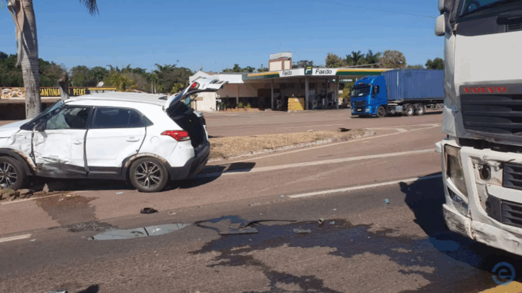 A motorista estava saindo de um posto de combustível às margens da rodovia quando teria olhado só para um lado da pista. Em seguida, acabou atingida pela carreta. Com o impacto da batida, o carro foi jogado em cima de um canteiro e acertou uma placa de sinalização.